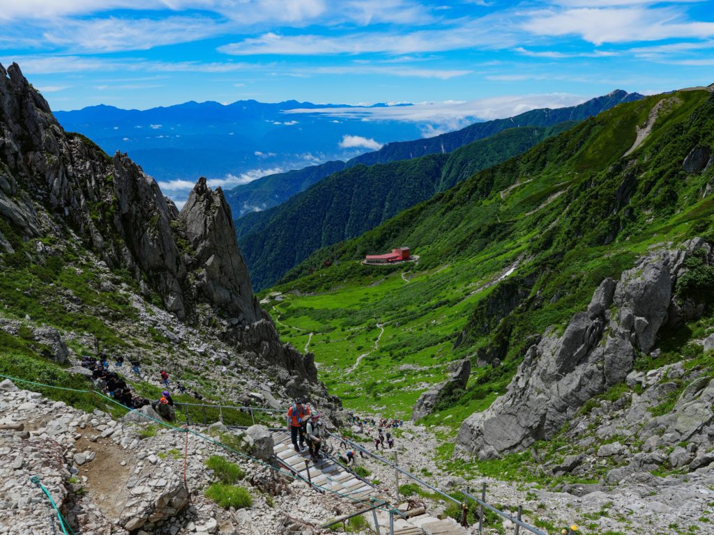ロープウェイを降りると千畳敷カールの絶景が広がります。鮮やかな緑がとても綺麗でした。 ここからカール最上部まで登っていきます。