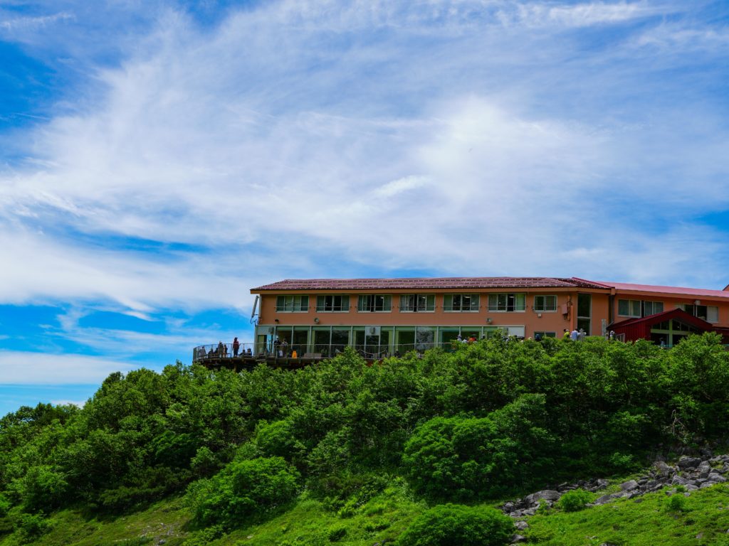 広々とした丘のような場所でとても開放的です。山小屋も営業しており、売店や食事の利用も可能です。